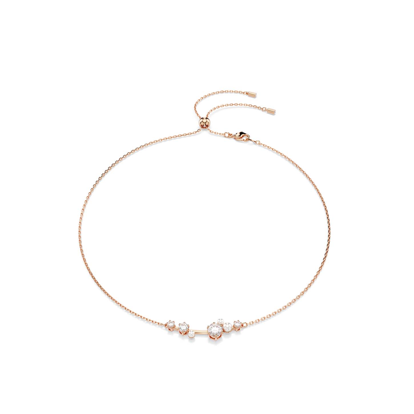 Proietta il tuo stile verso le stelle con questa versatile creazione Constella. Il design placcato in tonalità oro rosa presenta uno speciale meccanismo a scorrimento, che ti permette di indossare il gioiello come collana o girocollo. Sul davanti, le Swarovski Zirconia e Crystal Pearls Swarovski di diverse dimensioni sembrano quasi fluttuare tra le discrete articolazioni, per un look meraviglioso, dal gusto cosmico. Gioca con le differenti possibilità di styling e indossalo insieme a un anello abbinato per un’infinità di riflessi di luce.
