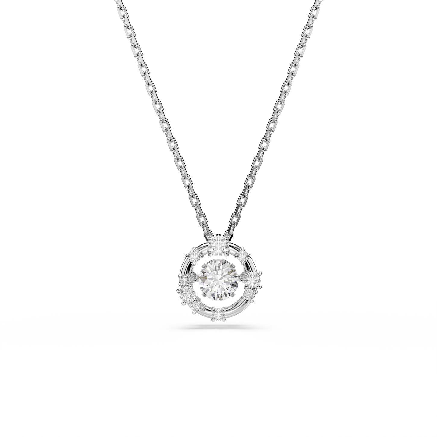 Scintillante come un cielo stellato, il pendente Constella è un fulgido esempio della maestria della luce di Swarovski. Il design placcato rodio presenta una pietra danzante al centro che produce infiniti riflessi, mentre Swarovski Zirconia più piccole sono posizionate attorno alla cornice metallica. Indossa questo pendente con il bangle o gli orecchini coordinati per proiettare il tuo stile nel cosmo.