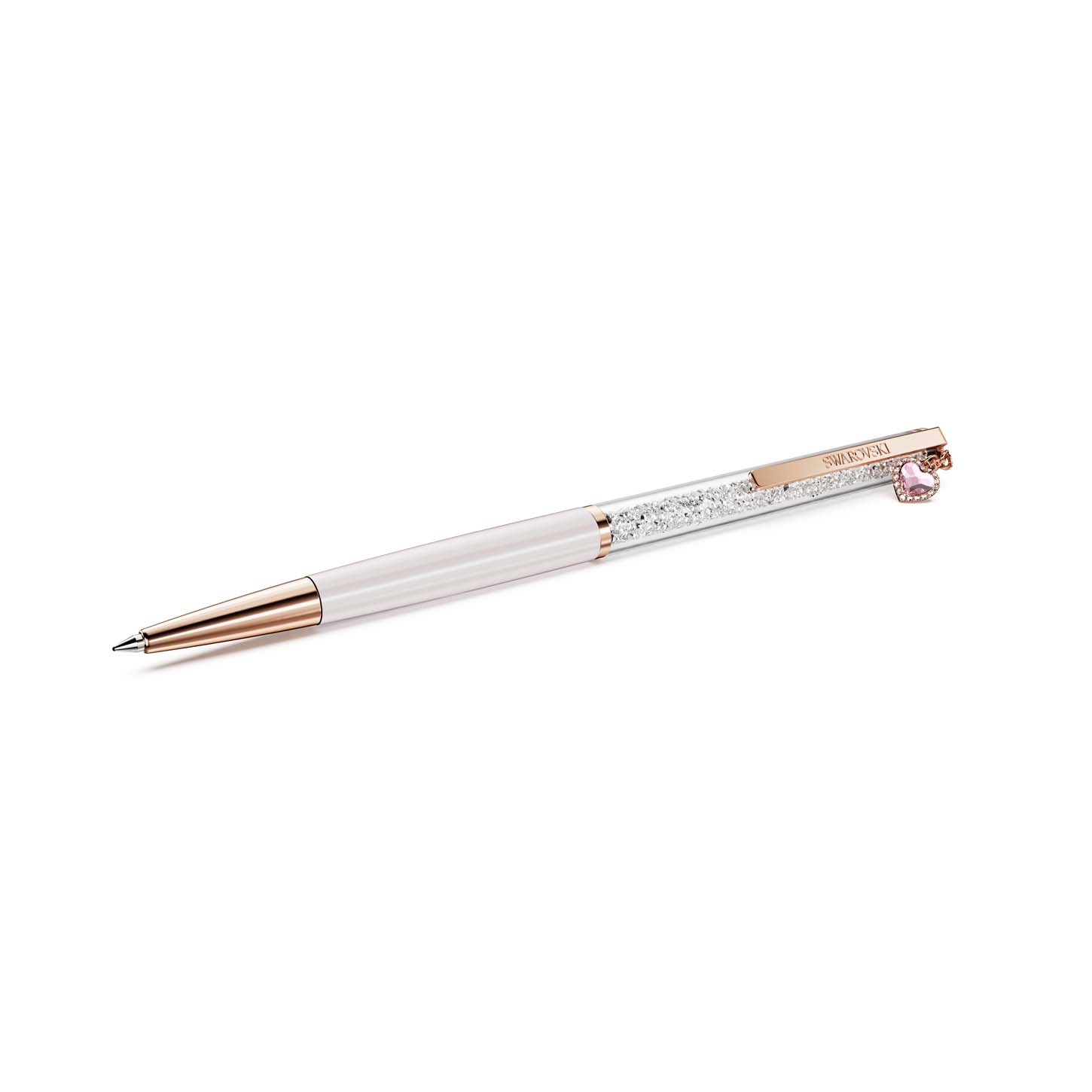 La sottile penna a sfera è un accessorio senza tempo per una creatività infinita. Il design sottile è impreziosito da circa 400 cristalli Cry, visibili attraverso la lunga finestrella trasparente. Oltre al fusto laccato rosa, la penna presenta una placcatura in tonalità oro rosa e un charm rosa a forma di cuore, simbolo di affetto, intenzione e un tocco personale dietro ogni parola scritta. Un regalo perfetto per te o per chi ami. Le ricariche di inchiostro nero e blu sono disponibili per l’acquisto negli store Swarovski.
