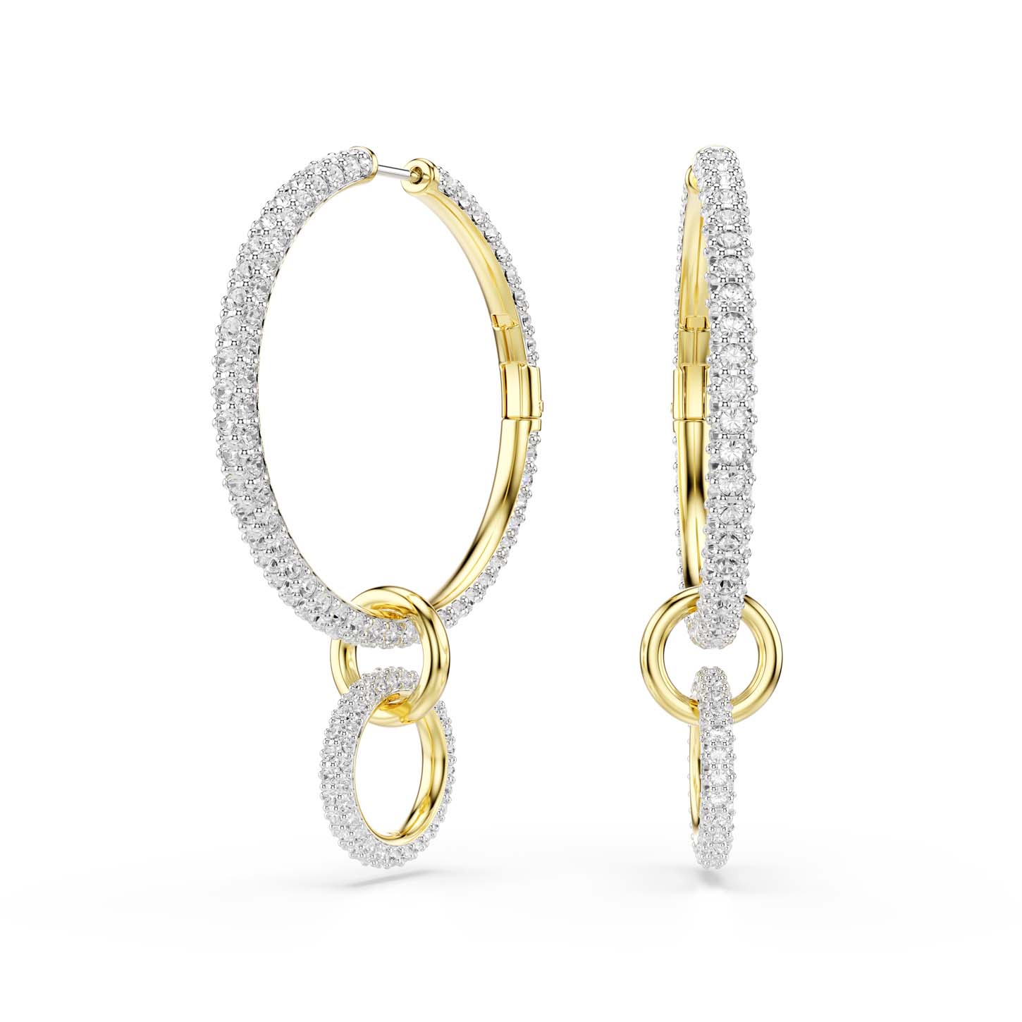 Conferisci ai tuoi look di tutti i giorni una sferzata di brillantezza con i sofisticati orecchini a cerchio. Realizzato con tre anelli interconnessi, ciascun orecchino è placcato in tonalità oro e impreziosito da radiosi cristalli Cry. Per un’opzione di stile versatile, la sezione pendente può essere facilmente rimossa, consentendoti di cambiare il loro aspetto con facilità.