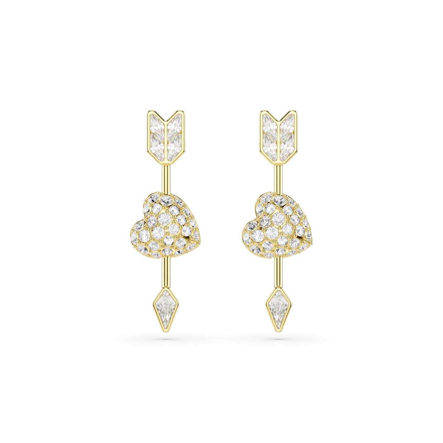 Cupido colpisce due volte negli espressivi orecchini Idyllia. Ciascun gioiello placcato in tonalità oro presenta un cuore trafitto da una freccia, con scintillanti cristalli Cry trasparenti su un lato e un vivace colore rosa sull’altro. Invertili tutte le volte che vuoi per opzioni di stile versatili.