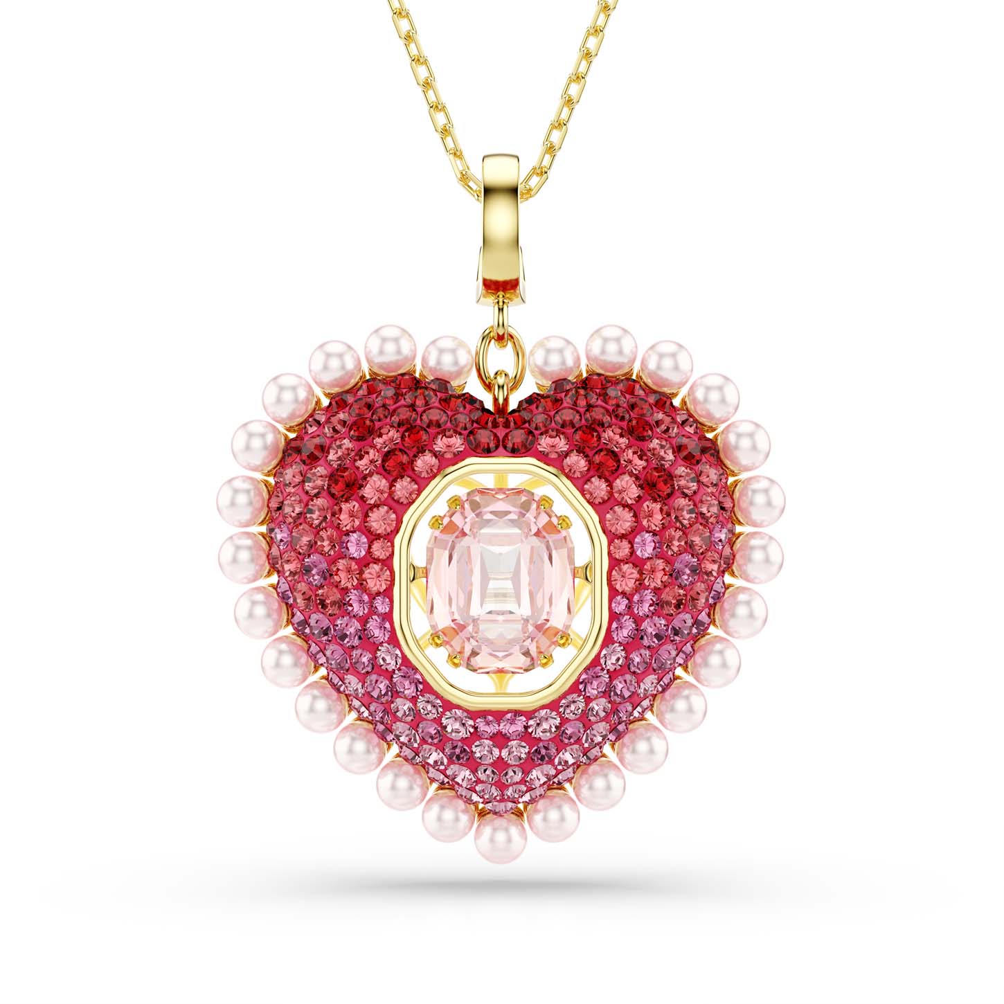 Un emblema di pura passione, lo straordinario pendente presenta un charm a forma di cuore rimovibile, decorato con Crystal Pearls Swarovski e cristalli scintillanti, tutti con romantiche tonalità sfumate. Al centro, una pietra danzante rosa crea infiniti riflessi di luce ad ogni tuo movimento. Indossalo sulla catena o applica il charm ad altri gioielli Swarovski per personalizzare il tuo stile.