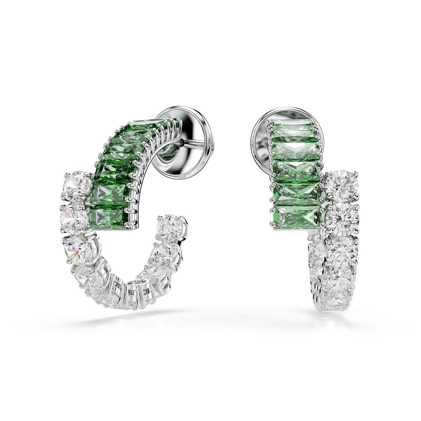 Questi lussuosi orecchini Matrix sono stati creati per una luminosità intensa. Ogni piccolo cerchio è placcato rodio e presenta un design sovrapposto con Swarovski Zirconia trasparenti e verdi con tagli Round e Baguette incastonate. Una scelta gioiosa per uno stile da giorno e da sera, questi orecchini possono essere abbinati a un anello o a un bangle coordinati per accentuare il colore del tuo stile.