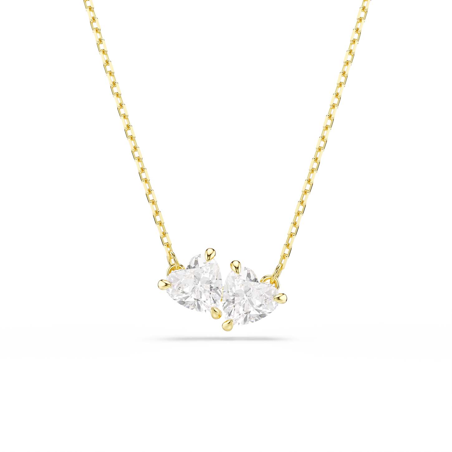 Questa collana Swarovski della famiglia Mesmera offre un design classico con una rivisitazione moderna. Impreziosito da splendide Swarovski Zirconia a forma di doppio cuore, il design è completato dalla placcatura in tonalità oro e dall’eleganza discreta della sua catena. Questa affascinante collana è il perfetto regalo romantico per la persona che ami.