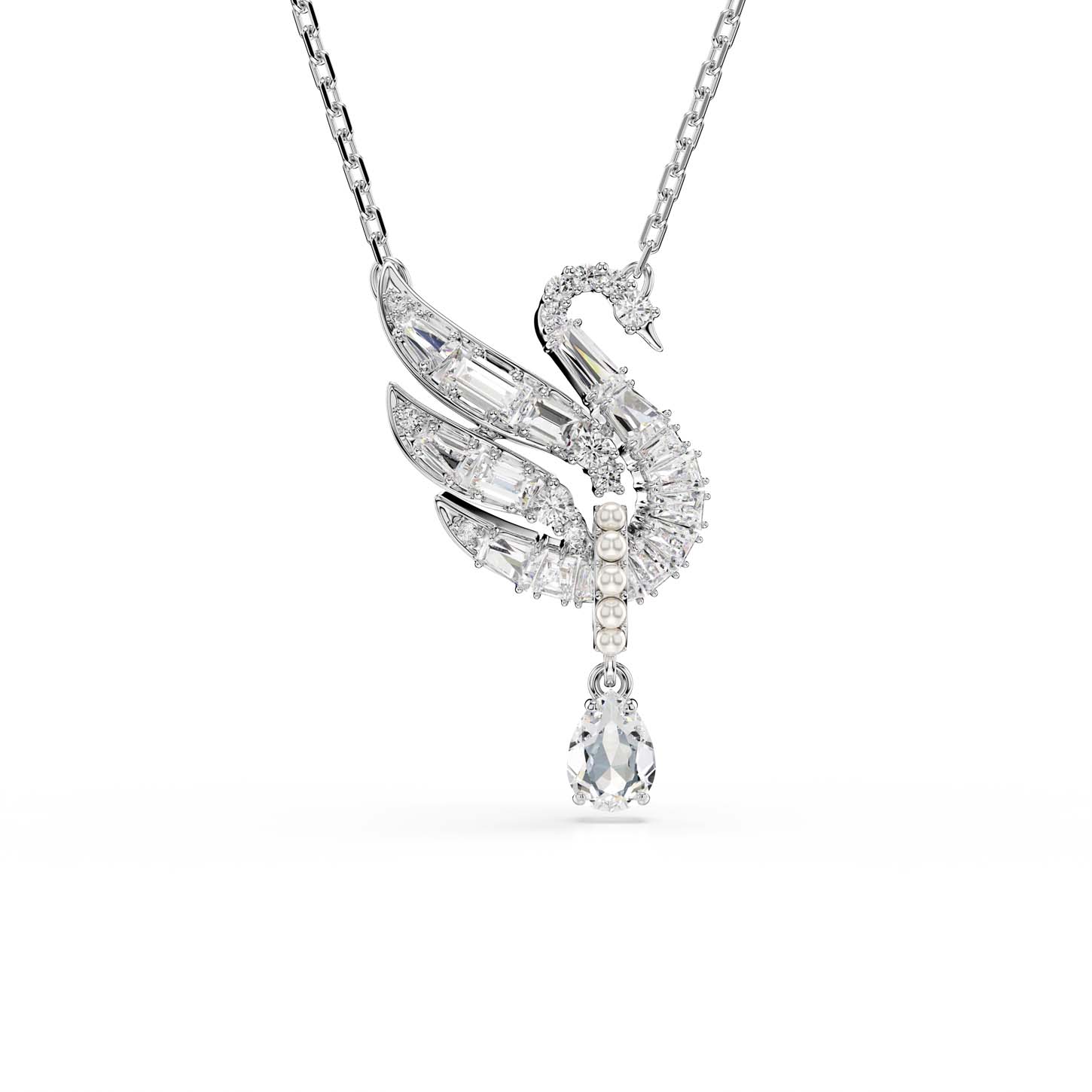 Con una squisita bellezza in ogni dettaglio, questo significativo pendente rende omaggio alle aggraziate qualità dell’iconico cigno Swarovski. Sospeso ad una delicata catena, il motivo centrale è impreziosito da Swarovski Zirconia trasparenti e presenta un singolo taglio Pear che pende da un cerchio in pavé di Crystal Pearls Swarovski. Indossalo insieme agli orecchini coordinati per un look di pura raffinatezza.